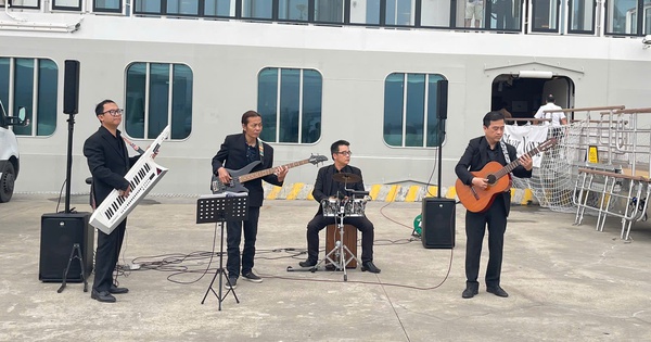 Gần 700 du khách quốc tế cập cảng tàu khách quốc tế Hạ Long sáng 24.2 (mùng 8 tháng giêng) được chào đón bằng chương trình âm nhạc đặc sắc.